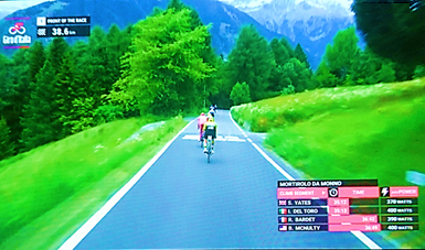 It gets even more bizarre when you look at the average performance of the GC favorites on the blisteringly steep Mortirolo Pass, which has a gradient of 7.6% over 12.6 km, with horrific ramps of up to 16%. It’s also important to consider that the competitors are in the third week of the race and have already conquered the Passo del Tonale and 100 kilometers of racing under their belts on this stage. As you can see from the brief display during the live broadcast, the top stars are powering up the Dolomitenhammer at a constant 400 watts. Given the reported ascent times of around 35 minutes, this translates to an average pace of 21.5 km/h! This, by the way, is almost five minutes faster than the previous record times from the infamous era of cycling. But back then, there wasn’t climate change, which would carry the aspirants uphill faster with warm thermals.