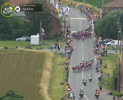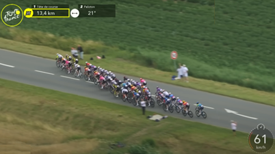 Le début du Tour, dans l’ancien bassin houiller du nord de la France, donne déjà après quelques kilomètres des indications sur la brutalité croissante avec laquelle le peloton va traverser la France. Cela apparaît clairement dès la lutte pour les premiers points dans les classements spéciaux, où les deux échappés Thomas et Vercher réussissent l’exploit de se renverser mutuellement dans la montée du Mont Cassel (voir photo de couverture) [1]. Les chutes qui ont contraint des protagonistes expérimentés tels que Ganna et Bissegger à abandonner prématurément laissent deviner les luttes acharnées qui se sont déroulées dans le peloton [2]. Dans son podcast [3] après la 1re étape, Geraint Thomas livre la preuve ultime de la brutalité du quotidien dans le monde du cyclisme avec cette déclaration significative : «Si seulement j’avais arrêté l’année dernière…». Même l’hypothèse selon laquelle une telle étape de plat, parcourue à une vitesse moyenne énorme de près de 48 km/h [4], serait en réalité l’affaire des sprinteurs et de leurs équipes, est réduite à l’absurde dans la finale, où la bataille des prétendants au classement général fait déjà rage, démantelant tout le peloton. À 16,8 km de l’arrivée, Visma Lease a Bike divise le peloton à 60 km/h dans un rond-point discret. Les grands perdants dès le premier jour, avec près de 40 secondes de retard au classement général, sont Roglic/Red Bull Bora Hans Grohe (RBH) et Evenepoel/Soudal Quick Step (SQT). Il est tout à fait incompréhensible que des équipes du World Tour aussi renommées, avec des effectifs très bien rémunérés, commettent de telles erreurs de débutants et se fassent ridiculiser par des équipes aux budgets et aux moyens nettement inférieurs [5].